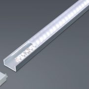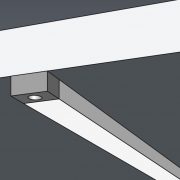 Profilo in alluminio anodizzato, con schermo diffusore satinato o opale e completo di tappi terminali di chiusura.
